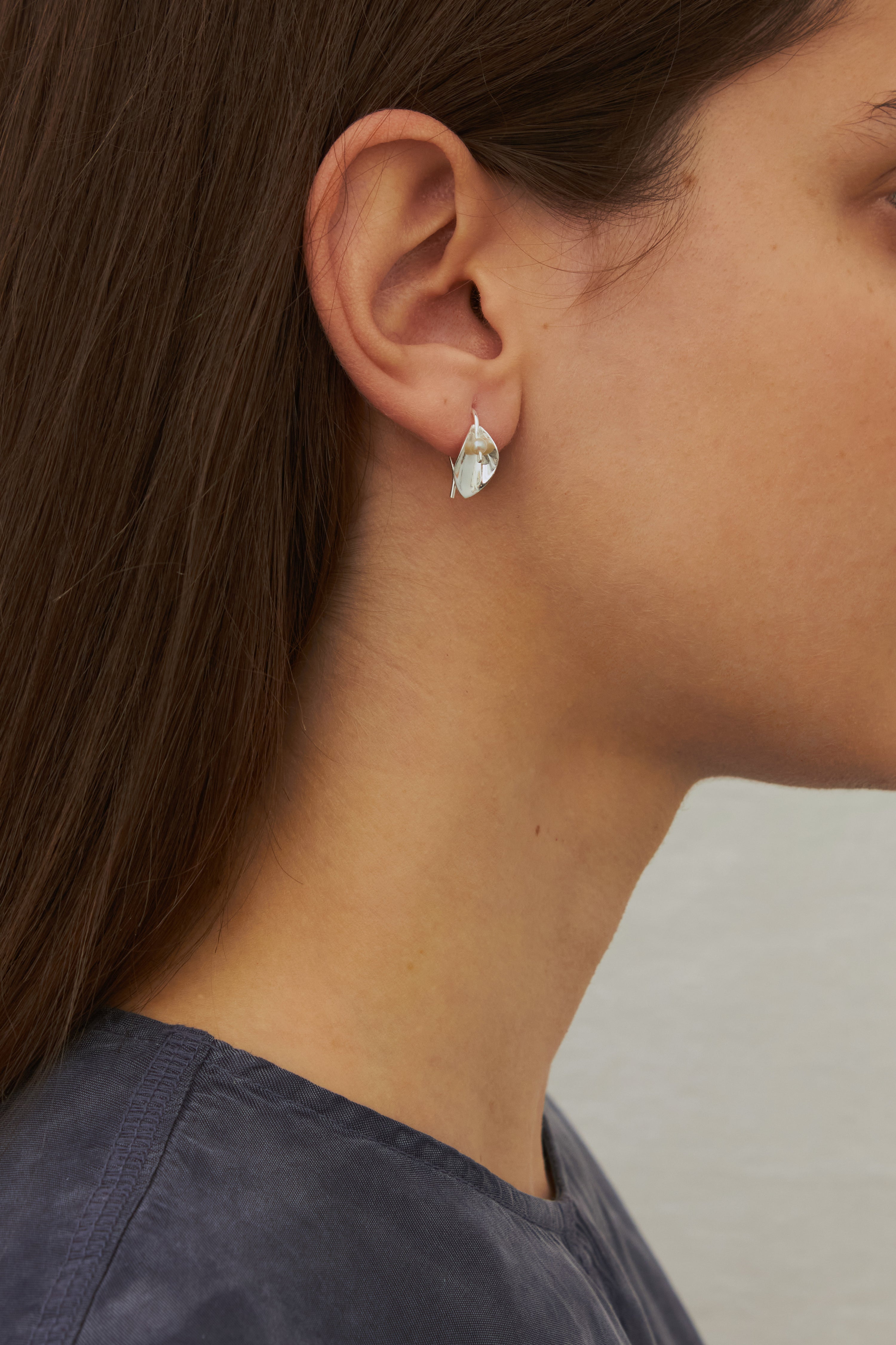 Our favorite proposal to combine the earrings from the Ría collection. The long Ría earring, with all the movement of the chain, the point of light of the short earring and the piercing touch of the earcuff. The movement of the chain and the light of the pearls in a different combination.